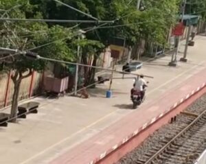 ரயில் நிலையத்திற்குள் இருசக்கர வாகனத்தை ஓட்டிச் செல்வது என்பது மிகப்பெரிய குற்றமாகும்.
