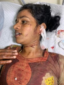 பின்னர் மேல் சிகிச்சைக்காக திருச்சியில் உள்ள ஒரு தனியார் மருத்துவமனைக்கு அனுப்பி வைத்தனர். பட்டப்பகலில் நடந்த இச்சம்பவம் அப்பகுதியில் பெரும் பரபரப்பை ஏற்படுத்தியுள்ளது.