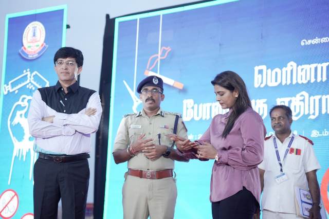 சர்வதேச போதை பொருள் ஒழிப்பு தினத்தை முன்னிட்டு சென்னை மெரினா கடற்கரையில் ‘போதைக்கு எதிரான விழிப்புணர்வு மேடை’ எனும் பெயரில் காவல்துறை அதிகாரிகளும், திரையுலக பிரபலங்களும், கல்லூரி மாணவிகளும் கலந்து கொண்ட விழிப்புணர்வு நிகழ்ச்சி நடைபெற்றது. இந்நிகழ்வில் போதை பொருளுக்கு எதிரான ‘எனக்கு வேண்டாம். நமக்கு வேண்டாம்’ எனும் விழிப்புணர்வு வாசகத்தை கல்லூரி மாணவிகள் ஒன்றிணைந்து முழங்கினர்.