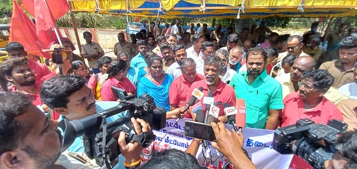 மக்கள் கலை இலக்கியக் கழகத்தின் மாநில பொதுச் செயலாளர் கோவன், புதிய ஜனநாயகத் தொழிலாளர் முன்னணியின் மாநில தலைவர் பழனி ஆகியோர் கண்டன உரை நிகழ்த்தினர். நிறைவாக, ஏர்போர்ட் ஆட்டோ சங்க கிளை தலைவர் அமீர் நன்றியுரையோடு ஆர்ப்பாட்டம் நிறைவுற்றது.