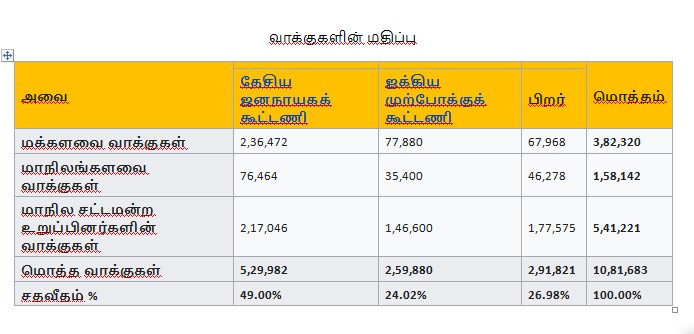ஆளும்கட்சி – எதிர்கட்சி வாக்கு விவரங்கள்