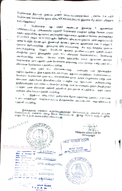 கடந்த மார்ச்-05 அன்று சென்னை உயர்நீதிமன்ற நீதியரசர் ஜி.கே.இளந்திரையன் முன்பாக விசாரணைக்கு வந்த வழக்கில், சிட்டி யூனியன் வங்கிக்கு எதிராக கோயம்புத்தூர் மத்திய குற்றப்பிரிவு போலீசில் பதியப்பபட்ட 74/2024 என்ற முதல் தகவல் அறிக்கை மீதான விசாரணைக்கு இடைக்கால தடை விதிக்கப்ட்டிருப்பதோடு, மேற்படி எஃப்.ஐ.ஆர்.ஐ ரத்து செய்ய வேண்டுமென்ற கோரிக்கையை விசாரணைக்கு ஏற்று எதிர்தரப்பிற்கு விளக்கம் கோரும் நோட்டீசை அனுப்பவும் உத்தரவிட்டிருக்கிறார், நீதியரசர் ஜி.கே.இளந்திரையன்.