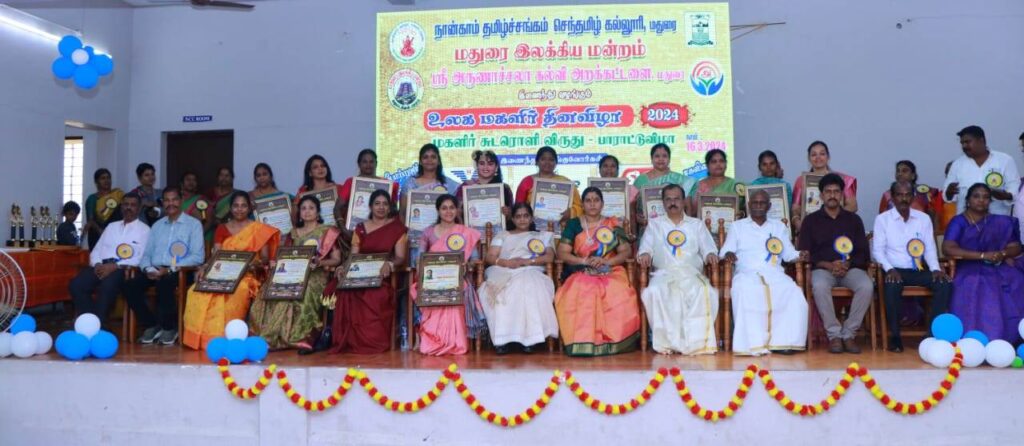 மதுரை இலக்கிய மன்றமும் அருணாச்சலா கல்வி அறக்கட்டளையும் இணைந்து நடத்திய உலக மகளிர் தின விழா செந்தமிழ் கல்லூரி அரங்கில் நடைபெற்றது. இந்த விழாவில் சென்னை உயர்நீதிமன்ற மதுரை கிளை நீதிபதி விக்டோரியா கௌரி சிறப்பு விருந்தினராக கலந்து கொண்டார். மகளிர் தின விழாவில் பல்வேறு துறைகளில் சாதனை படைத்து கொண்டிருக்கும் பெண்களுக்கு மகளிர் சுடரொளி விருது கொடுத்து கௌரவித்தார்கள்.