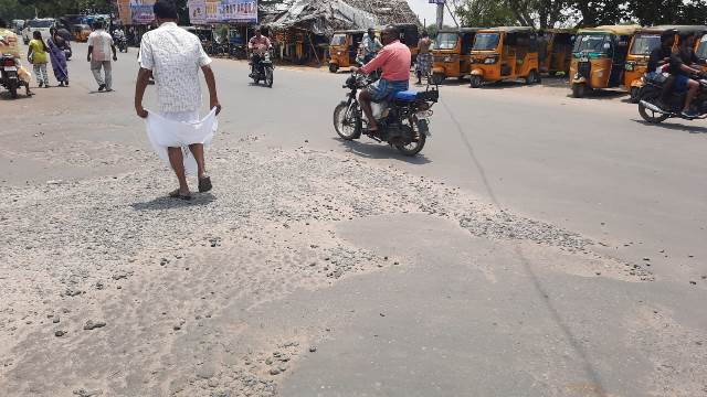 துறையூர் பஸ் நிலையத்திற்குள் அரசு பஸ் , மினி பஸ்கள் உள்ளிட்ட தனியார் பஸ்கள் சுமார் 260 பஸ்கள் தினந்தோறும் உள்ளூர் மற்றும் வெளி மாவட்டங்களுக்கு சென்று வரும் நிலையில், பஸ் நிலையத்தில் உள்ள தார்ச்சாலையில் அரளைக் கற்கள் பெயர்ந்து பள்ளம் ஏற்பட்டு , பஸ்கள் உள் நுழையும் இடத்தில் மிகவும் அபாயகரமாக விபத்து ஏற்படும் வகையில் காட்சியளிக்கிறது.