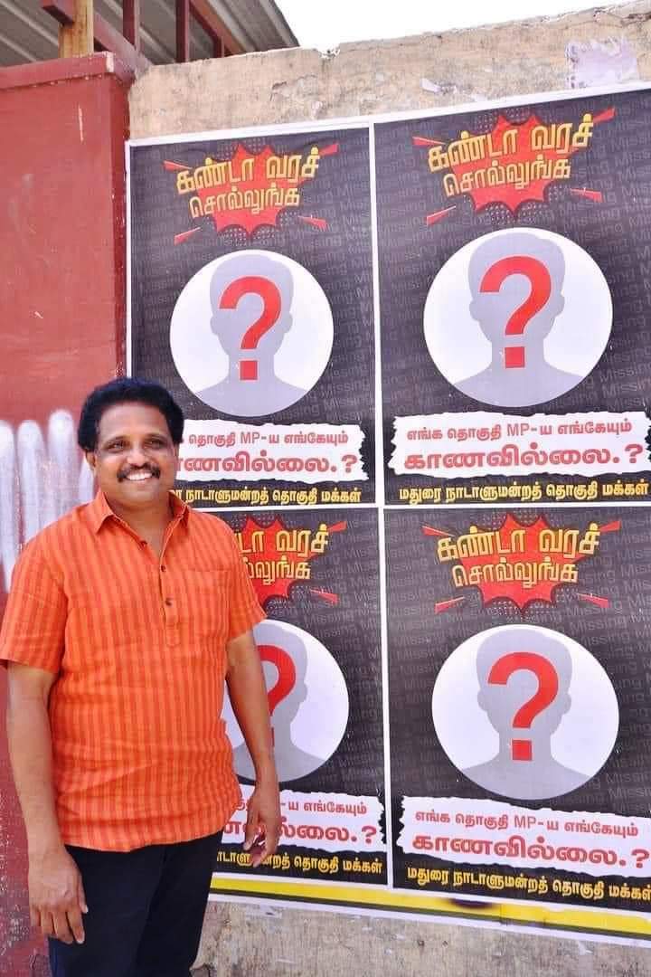தமிழ்நாடு முழுவதும் எங்கள் எம்பி காணவில்லை கண்டா வரச்சொலால்லுங்க என போஸ்டர் அடித்து ஒட்டி வருகின்றனர் நேற்று எங்க தொகுதி எம்.பி.-ஐ கண்ட வரச் சொல்லுங்க” என செந்தில்குமார் எம்.பி.யை காணவில்லை என்று தர்மபுரி நாடாளுமன்ற தொகுதி மக்கள் கேட்பது போன்ற போஸ்டர் ஒட்டப்பட்டுள்ளது.