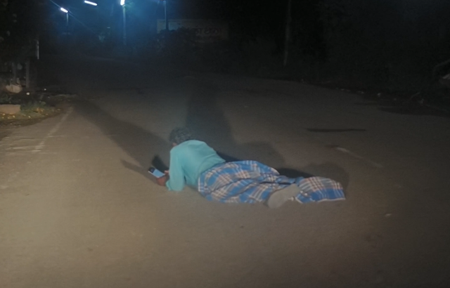 நடுரோட்டில் ஹாயாக படுத்து மொபைல் பார்த்த அலப்பறை ஆசாமி !