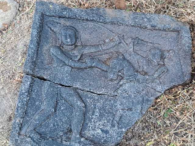 மேலும் அங்கிருந்து கந்திலி மலையின் அடிவார புதர்களுக்கிடையே மூன்று பாகங்களாக உடைக்கப்பட்டு சிதறிக்கிடந்த போர் மறவர் நடுகல் காண சென்றோம்.