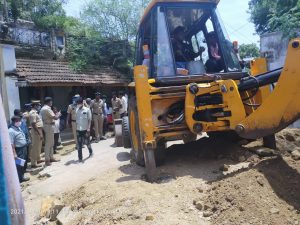 இதையடுத்து மாவட்ட ஆட்சித் தலைவரின் உத்தரவின் பேரில் தாசில்தார், சமயபுரம் காவல் ஆணையர், விஏஓ, சர்வேயர், பிடிஓ உள்ளிட்ட அதிகாரிகள் நேரில் வந்து ஆகஸ்ட் 10 இன்று மதியம் 1 மணி அளவில் ஆக்கிரமிப்புகளின் ஒரு பகுதியை மட்டும் தற்காலிகமாக அகற்றியுள்ளனர்.