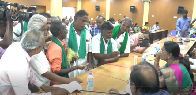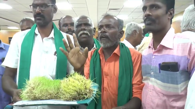 இதனால் 15 நாட்களுக்கு மேலாக நெல் களத்திலேயே இருந்ததால் நெல் முளைத்து விட்டதாகவும், அந்த முளைத்த நெல்லுடன் இன்று நடைபெறும் மாவட்ட ஆட்சியர் அலுவலகத்தில் விவசாயிகள் குறைதீர்க்கும் கூட்டத்தில் வந்த ஐயங்கோட்டை பகுதியைச் சேர்ந்த முருகன் மாவட்ட ஆட்சியர் அலுவலகம் இது குறித்து முறையிட்டு கண்ணீர் மல்க கோரிக்கை வைத்தார்.
