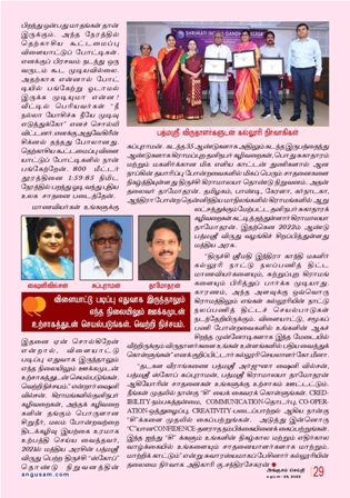 “தடகள வீராங்கனை பத்மஸ்ரீ அர்ஜுனா ஷைனி வில்சன், பத்மஸ்ரீ ஸ்கோப் சுப்புராமன், பத்மஸ்ரீ கிராமாலயா தாமோதரன் ஆகியோரின் சாதனைகள் உங்களுக்கு உற்சாகம் ஊட்டட்டும். நீங்கள் முதலில் நான்கு “சி” யைக் கைவரக் கொள்ளுங்கள். CREDIBILITY–நம்பகத்தன்மை, COMMUNICATION–தொடர்பு, CO-OPERATION-ஒத்துழைப்பு, CREATIVITY–படைப்பாற்றல் ஆகிய நான்கு “சி”க்களை முதலில் கைப்பற்றுங்கள். அடுத்து இன்னொரு “C” யான CONFIDENCE—தளராத நம்பிக்கையினைக் கைப்பற்றுங்கள். இந்த ஐந்து “சி” க்களும் உங்களின் நிகழ்கால மற்றும் எதிர்கால வாழ்க்கையில் உங்களையும் சாதனையாளர்களாக மாற்றும். மாற்றிக் காட்டும்” என்று சுவாரஸ்யமாகப் பேசினார். கல்லூரியின் தலைமை நிர்வாக அதிகாரி கு.சந்திரசேகரன்.