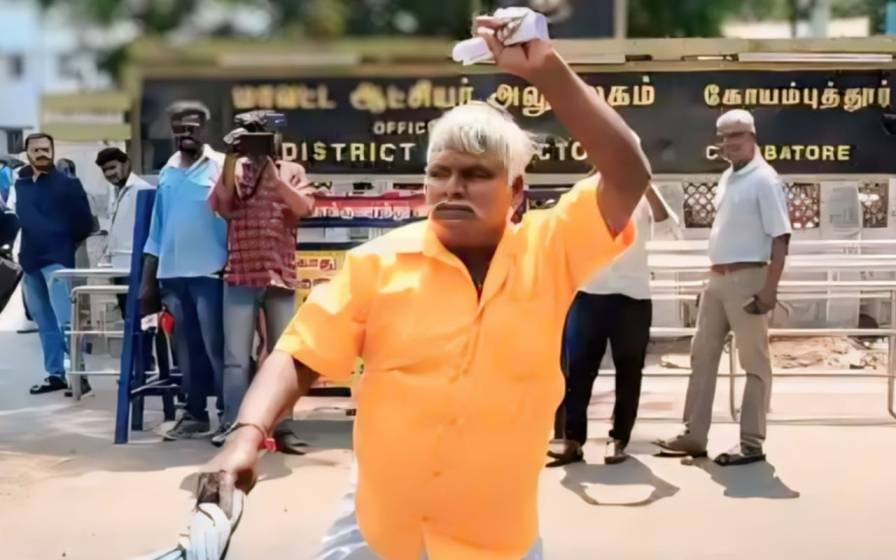 இதேபோல, கோவை மாவட்டம் செல்வபுரத்தைச் சேர்ந்த சுயேச்சை வேட்பாளரான துரைசாமி என்பவர், நடனமாடிக் கொண்டும் மற்றும் முருகா முருகா என்று தொடர்ந்து பாடிக்கொண்டும் வேட்புமனுத் தாக்கல் செய்ய வந்திருந்தார்.