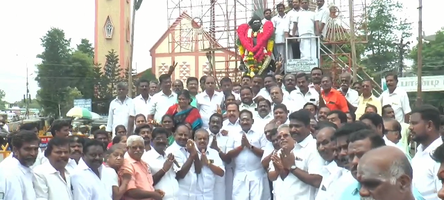 வீரபாண்டிய கட்டபொம்மனின் 225வது நினைவு நாளையொட்டி மதுரை பெரியார் பேருந்து நிலையம் அருகே உள்ள கட்டமொம்மன் சிலைக்கு அதிமுக முன்னாள் அமைச்சர் செல்லூர்ராஜு மாலை அணிவித்து மரியாதை செய்தார்.