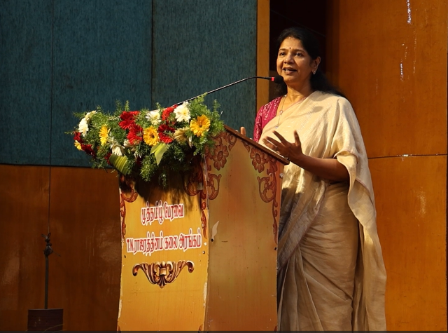 நிகழ்வில் பேசிய கனிமொழி கருணாநிதி எம்.பி; அறம் என்று சொல்லும்போது, நாம் தப்பாக வேற எந்த அறத்தையும் நினைத்துக்கொள்ளக் கூடாது. ஏனென்றால், இந்த காலத்திலும் அறம் அறம் என்று சொல்லி நம்மள நிறைய மண்டையை கழுவிக் கொண்டே இருந்தாங்க. அதனால் அதையெல்லாம் விட்டுவிட்டு, அறம் என்று சொல்லுவது மனிதநேயம்.