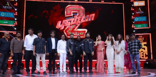 புஷ்பா-2′ ப்ரீ ரிலீஸ் ஈவெண்ட் நவம்பர் 24-, ஆம் தேதி இரவு சென்னை  தாம்பரம், சாய்ராம் கல்லூரியில் நடைபெற்றது. இந்தப்  படத்தை தமிழ்நாட்டில் விநியோகிக்கும் ஏஜிஎஸ் எண்டர்டெயின்மெண்ட் நிகழ்வு நடந்த கல்லூரி முழுவதும் ‘புஷ்பா2’ தீம்மால் அலங்கரித்திருந்தார்கள்.
