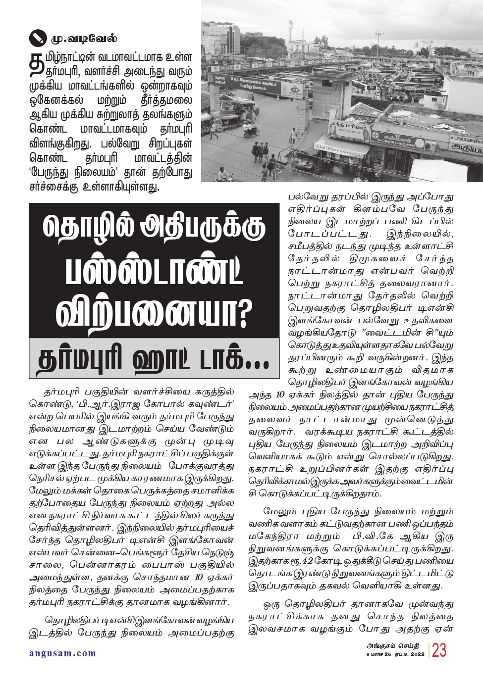 தொழில்அதிபருக்கு  பஸ்ஸ்டாண்ட் விற்பனையா? தர்மபுரி ஹாட் டாக்…