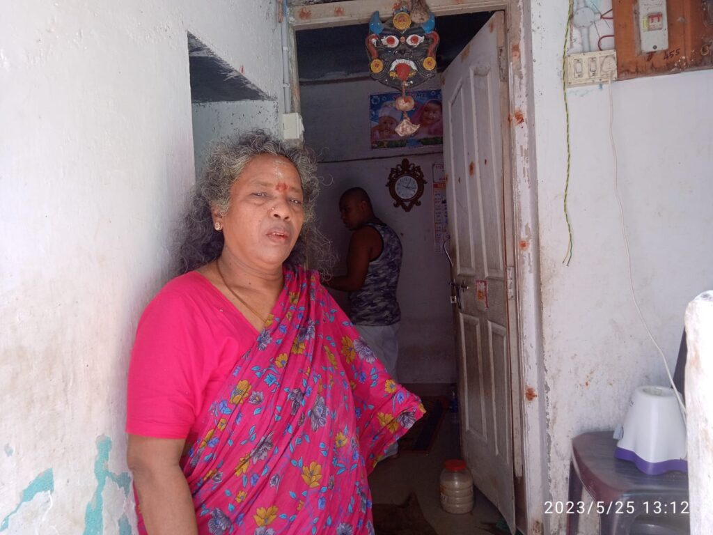 3 மீன்களை வெட்டி முடிச்சிட்டாங்க. இன்னும் 2 மீன்களை வெட்டி முடிப்பதற்காக நானும் என் மகளும் காத்திக்கிட்டு இருந்தோம். அந்த நேரத்திற்குள்ள அவர் எதிரேயுள்ள டாஸ்மாக் கடைக்கு ஓடோடிச் சென்று குடித்துவிட்டு திரும்பி வந்தார். நெஞ்சு எரிச்சலாக இருக்குனு சொன்னார். அவரது வாயில் நீர் வழிஞ்சது. எங்க கண் முன்னாடியே அவர் அப்படியே மயங்கி கீழே விழுந்திட்டார்,” எனக் கூறி கண் கலங்குகிறார் குப்புசாமியின் மனைவி காஞ்சனா என்ற காஞ்சனா தேவி (58).