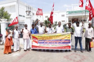 இதில் ஏஐடியூசி தேசிய நிர்வாகக்குழு உறுப்பினர் சி.சந்திரகுமார், மாவட்ட பொருளாளர் தி.கோவிந்தராஜன், மாவட்டச் செயலாளர்கள் துரை.மதிவாணன், ஆர்.பி.முத்துக்குமரன், மாநகர செயலாளர் ஆர்.பிரபாகர், ஆதித் தமிழர் பேரவை மாவட்ட இளைஞர் பேரவை பொறுப்பாளர் பிரேம்குமார் நிவாஸ், விசிறி சாமியார் முருகன் உள்ளிட்டோர் கலந்து கொண்டு கோரிக்கைகளை வலியுறுத்தி கோசங்கள் எழுப்பினர்.