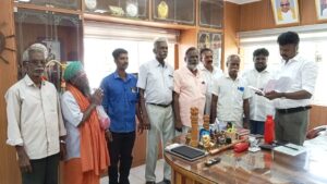 பின்னர், தஞ்சை மாநகராட்சி ஆணையர் சரவணகுமாரை அவரது அலுவலகத்தில் சந்தித்து கோரிக்கைகள் அடங்கிய மனுவை அவரிடம் வழங்கினர்.
