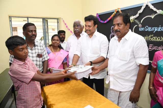மதுரை சத்திரப்பட்டி பகுதியில் ஊராட்சி ஒன்றிய துவக்கப்பள்ளி மாணவ, மாணவிகளுக்கு நலத்திட்ட உதவிகளை பள்ளிக் கல்வித்துறை அமைச்சர் அன்பில் மகேஷ் பொய்யாமொழி, அமைச்சர் மூர்த்தி ஆகியோர் வழங்கினர். தொடர்ந்து, திறன்மிகு வகுப்பறையில் மாணவர்களை பேச வைத்து ரசித்தார்.