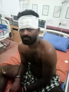 பிடிபட்ட கொள்ளையன் விஜய் என்பவனை பொது மக்கள் சூழ்ந்து கொண்டு தாக்கியதில் நெற்றி மற்றும் இரு கால்களில் காயம் ஏற்பட்டு மணப்பாறை அரசு மருத்துவமனையில் உள்நோயாளியாக சிகிச்சை பெற்று வருகிறார்.