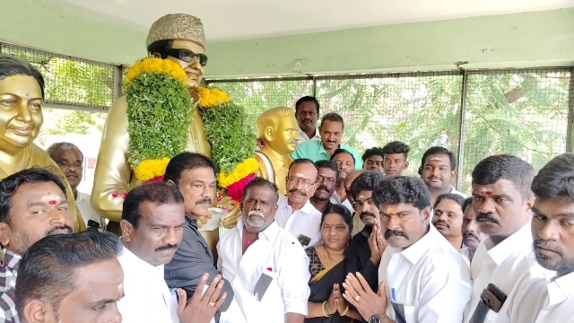 அப்போது சிலையின் அருகே கல்லூரி மாணவர் கெளசிக் என்பவர் மொட்டை அடித்து எம்ஜிஆர் க்கு தனது நினைவஞ்சலியை செலுத்தினார். கல்லூரி மாணவர் கௌசிக்கின் தாத்தா மலையாண்டி, அண்ணா தொழிற்சங்க செயலாளராக இருந்தவர்.
