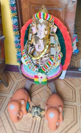 எங்க வீட்ல நவராத்திரிக்கும் கொலு வைப்போம் பிள்ளையார் சதுர்த்திக்கும் கொலு வைப்போம் “எங்க வீட்டில் ஒவ்வொரு ஆண்டிலும் நவராத்திரிக்கு கொலு வைப்போம். அதுபோல பிள்ளையார் சதுர்த்திக்கும் நாங்களே கொலு வைத்து வருகிறோம். பிள்ளையார் சதுர்த்திக்கும் அனேகமாகக் கொலு வைப்பது, நாங்களாக தான் இருப்போம் என நினைக்கிறோம். முப்பத்தைந்து ஆண்டுகளாக வீட்டில் நவராத்திரி கொலு வைத்து, வழிபாடு செய்து வருகிறோம்.