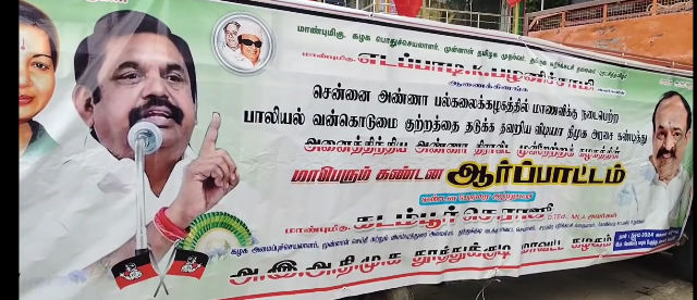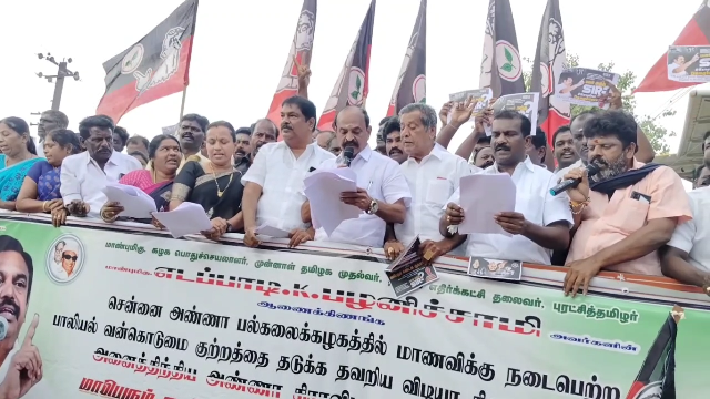 அண்ணா பல்கலைக்கழக மாணவி விவகாரம் – தமிழக அரசினை கண்டித்து அதிமுக சார்பில் கடந்த 27ஆம் தேதி ஆர்ப்பாட்டம் அறிவிக்கப்பட்டு இருந்த நிலையில் முன்னாள் பிரதமர் மன்மோகன் சிங் மரணம் காரணமாக ஒத்திவைக்கப்பட்டது.