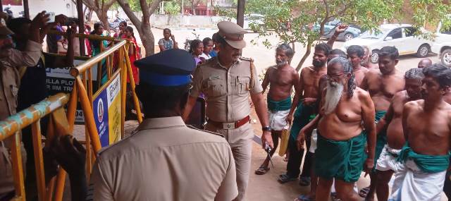 பத்துக்கும் மேற்பட்ட விவசாயிகளுடன் திருச்சி மாவட்ட ஆட்சியர் அலுவலகத்தில் நடைபெற்ற பொதுமக்கள் குறைதீர்க்கும் கூட்டத்தில் கலந்து கொண்டு கோரிக்கை மனு ஒன்றை அளித்துள்ளார். விவசாயிகள் அனைவரும் மேல்சட்டையின்றி, கூட்ட அரங்கிற்கு நுழைய முயன்றபோது பாதுகாப்புக்கு நின்ற போலீசார் தடுத்து நிறுத்தினர். “காந்தியே வெறும் கோவணத்தோடுதான் சுற்றித்திரிந்தார். காந்தியே வந்தாலும் உள்ளே விடமாட்டீர்களா?” என்று வாக்குவாதத்தில் ஈடுபட, பின்னர் அவர்கள் அனுமதிக்கப்பட்டனர்.