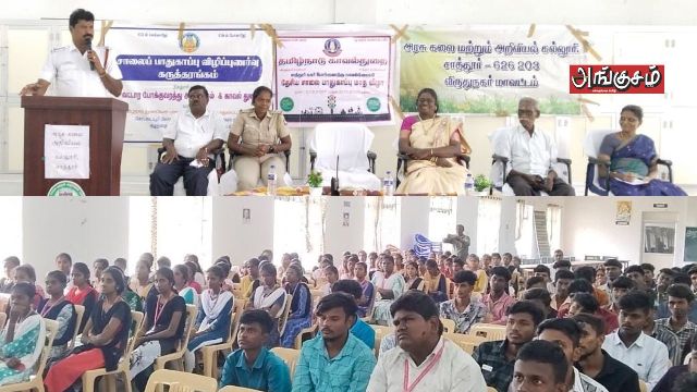 சாத்தூரில் கல்லூரி மாணவ மாணவிகளுக்கு சாலை பாதுகாப்பு விழிப்புணர்வு நிகழ்ச்சி !
