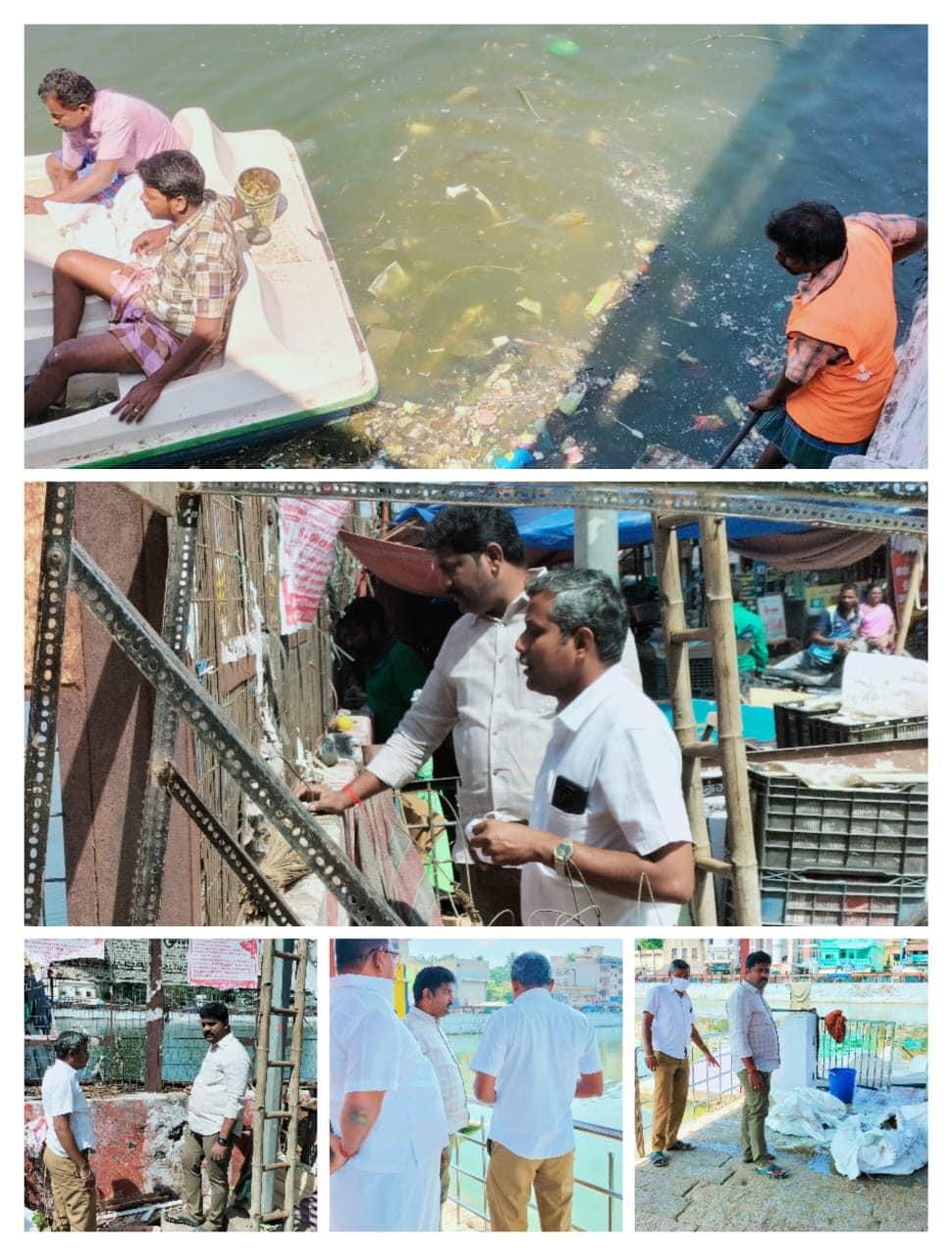 மலைக்கோட்டை தாயுமானவர் கோவிலுக்கு சொந்தமான தெப்பக்குளத்தில் திடீரென மீன்கள் இறந்து துர்நாற்றம் வீச தொடங்கிய உடனே மீன்களை அப்புறப்படுத்தி குளத்தை தூய்மைபடுத்தியது பஜார் பகுதி மக்கள் மற்றும் வியாபாரிகளிடம் பெரும் பாராட்டை பெற்றது.