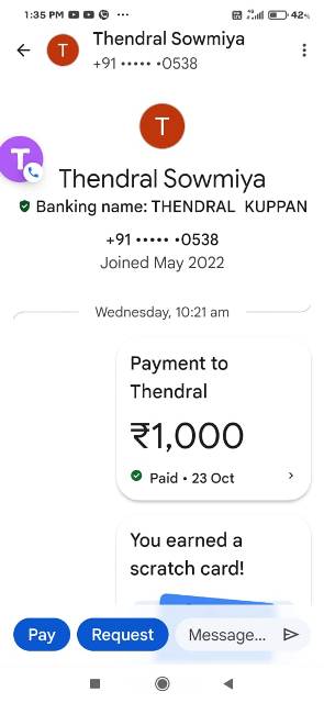 சற்று நேரத்தில், அதே கம்பெனி ஆட்கள் இருவர் வீட்டிற்கு வந்திருக்கிறார்கள். ஆறாம் வகுப்பு பயிலும் அவரது மகனிடம், பணத்தைக் கேட்டிருக்கிறார்கள். அவர் அவரது அம்மாவின் கைப்பேசிக்கு தொடர்புகொள்கிறார். இணைப்பு பிசியாக இருக்கிறது. “உங்க அம்மாகிட்ட பேசிட்டோம். அவங்க கிட்ட எங்க மேனேஜர்தான் பேசிகிட்டிருக்கிறார். நீ பணத்தை கொடு தம்பி. வண்டி பின்னாடி வந்துகிட்டு இருக்கிறது.” என்பதாக பேச, அந்த சிறுவனும் பணத்தை எடுத்துக் கொடுத்திருக்கிறான்.