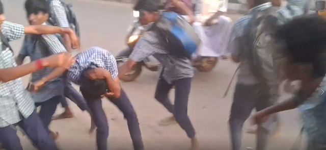 தொடர்ந்து ஒரு கட்டத்தில் கற்களை எடுத்து தூக்கி வீசும் காட்சிகள் வாகன ஓட்டிகள் மற்றும் பொதுமக்களிடையே அச்சத்தை ஏற்படுத்தியுள்ளது. அரசு பள்ளி மாணவர்கள் ஒருவரை ஒருவர் சரமாரியாக தாக்கிக் கொள்ளும் காட்சிகள் தற்போது வேகமாக பரவி வருகிறது.