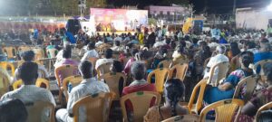 தொடர்ந்து மாலை 6 மணிக்கு நடைபெற்ற மக்கள் கலை விழாவுக்கு சாத்தூர் நகர்மன்றத் தலைவர் எஸ். குருசாமி தலைமை வகித்தார். வரவேற்புக்குழுவின் சார்பில் வ. நவநீதகிருஷ்ணன் வரவேற்றார். பாரதியாரின் படத்தை கிருங்கை சேதுபதி, வ.உ. சிதம்பரனாரின் படத்தை ரெங்கையா முருகன், தனுஷ்கோடி ராமசாமியின் படத்தை கவிஞர் ரவீந்திரபாரதி ஆகியோர் திறந்து வைத்தனர்.