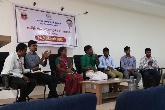 இதன் ஒரு நிகழ்வாக ஆட்சி மொழி விழிப்புணர்வு குறித்த பட்டிமன்றமானது திருச்சி SRM TRP பொறியியல் கல்லூரியில் 23.12.2024 அன்று காலை 10 மணி அளவில் தொடங்கி நடைபெற்றது. திருச்சி மாவட்டத் தமிழ் வளர்ச்சித் துறையும் SRM TRP பொறியியல் கல்லூரியும் இணைந்து நடத்திய இந்தப் பட்டிமன்றத்தை SRM TRP பொறியியல் கல்லூரியின் முதல்வர், டாக்டர் M.சிவக்குமார்  அவர்கள் தலைமையேற்று  தொடங்கி வைத்தார்.