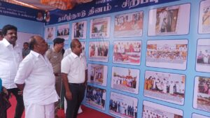 இதைத் தொடர்ந்து, அங்கே தமிழ்நாடு அரசு சார்பில் அமைக்கப்பட்டிருந்த கண்காட்சியை மாவட்ட ஆட்சியர் தீபக் ஜேக்கப் தொடங்கி வைத்துப் பார்வையிட்டார்.