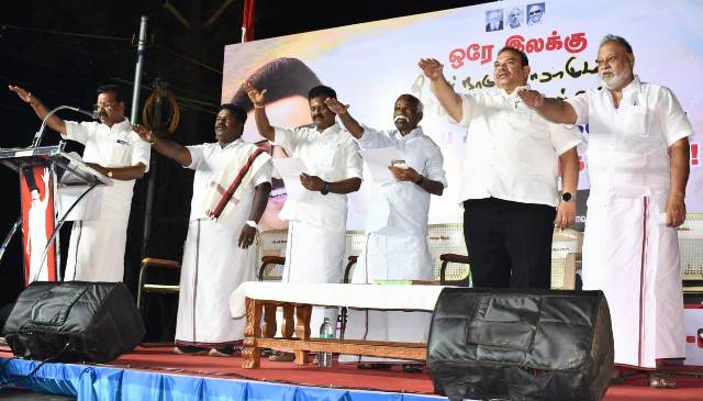 இக்கூட்டத்தில் பங்கேற்றவர்கள் தமிழ்நாட்டின் நலன்களையும் எதிர்காலத்தையும் யாருக்காகவும் எதற்காகவும் விட்டுத் தர மாட்டோம். தமிழ்நாட்டின் உரிமைக்காக ஒன்றுபட்டு போராடுவோம். தமிழ்நாடு போராடும், தமிழ்நாடு வெல்லும், இதுதான் ஒரே இலக்கு என்ற உறுதிமொழிகளை எடுத்துக் கொண்டனர்.