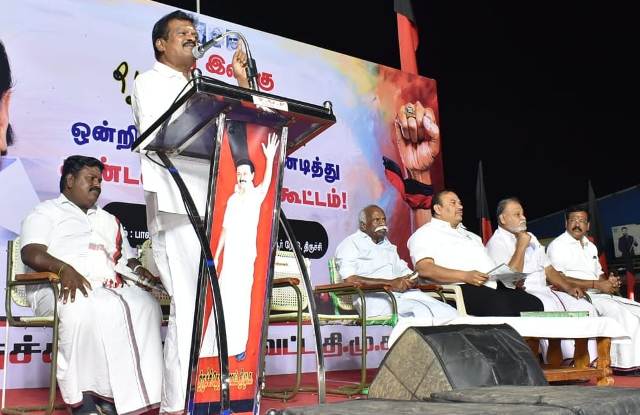 மும்மொழிக் கொள்கை என்ற பெயரில் இந்தி திணிப்பை எதிர்க்கவும், தொகுதி மறு சீரமைப்பு என்ற பெயரில் தமிழ்நாட்டின் நாடாளுமன்ற தொகுதிகளின் எண்ணிக்கையை குறைத்தும் நம்மை இரண்டாம் தர குடிமக்களாக ஆக்க நினைக்கும் மோடி அரசுக்கு எதிரான கண்டன பொதுக்கூட்டம்.