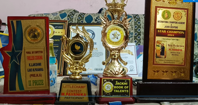 அதே போல் தூத்துக்குடி மாவட்டத்தில் நடைபெற்ற திருக்குறள் போட்டியில் இரண்டாவது இடத்தையும் பிடித்துள்ளார். இவரது இந்த சாதனைகளை பெற்றோர்கள் , உறவினர்கள் வெகுவாக பாராட்டினார்கள்.