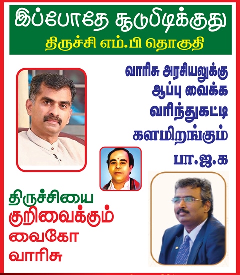 சூடுபிடிக்குது திருச்சி எம்பி தொகுதி: வாரிசு அரசியலுக்கு ஆப்பு வைக்க வரிந்துகட்டி களமிறங்கும் பாஜக!