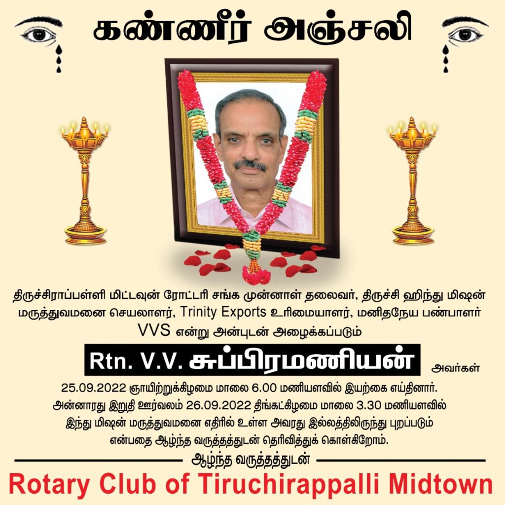 வி.வி.எஸ். சுப்ரமணியம். நேற்று 25.09.20222 அன்று மாலை 6.00 மணி இயற்கை எய்தினார்.