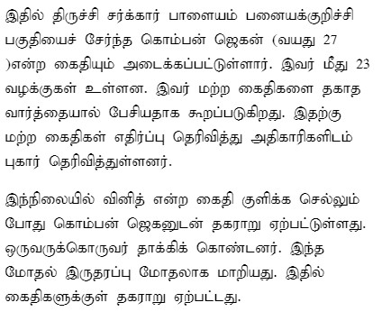 ஜெயிலுக்குள்ளேயேயும் கெத்து காட்டுவதில் குறைவைக்காத ஜெகன், சக கைதிகளுடன் அடிதடி தகராறில் ஈடுபட்டதற்காக சிறைக்குள்ளேயேயும் வழக்கு வாங்கிய பெருமைக்குரியவன் ஜெகன். இதற்காகவே, சென்னை பூந்தமல்லி சிறைக்கு மாற்றப்பட்டிருக்கிறான். அங்கிருந்து வழக்கு விசாரணைக்காக ஒருமுறை திருச்சிக்கு அழைத்து வந்தபோது, அதற்கடுத்த நாளும் நீதிமன்றத்தில் ஆஜர்படுத்த வேண்டிய நிலையில் ஒருநாள் மட்டும் திருச்சி சிறையில் அடைக்க முயற்சித்திருக்கின்றனர். அப்போது, போலீசாருடன் தகராறு செய்ததற்காகவே ஒரு வழக்கு இவன் மீது பதியப்பட்டிருக்கிறது.